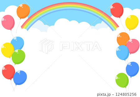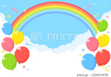 シンプル 青空 雲 虹 風船 紙吹雪 背景イラスト