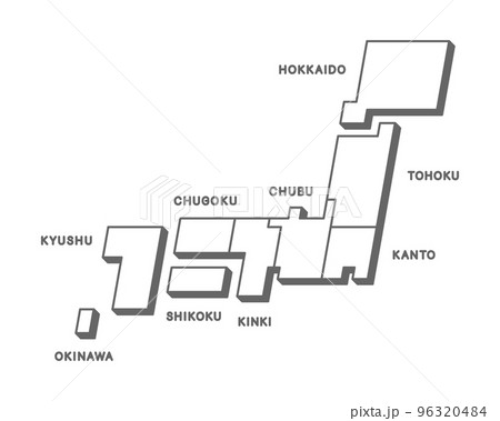 シンプルな線画で描いた、デフォルメした日本地図の地域別イラスト