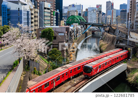 東京 千代田区 聖橋から見た東京メトロ丸ノ内線と桜