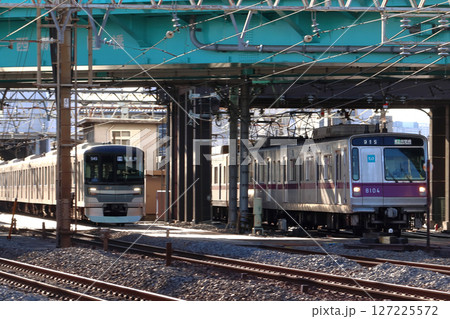 朝の東武スカイツリーライン西新井駅に停車中の10030系電車(東京都足立区)