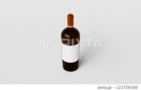 Hand grasping bottle with blank white label against a clear blue sky for advertising mockup