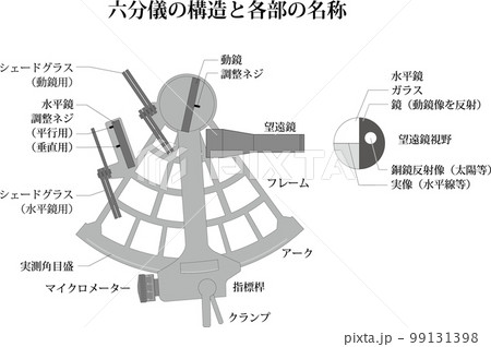 六分儀の構造と各部の名称