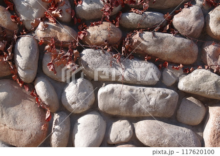 天然の丸い石を練積み壁