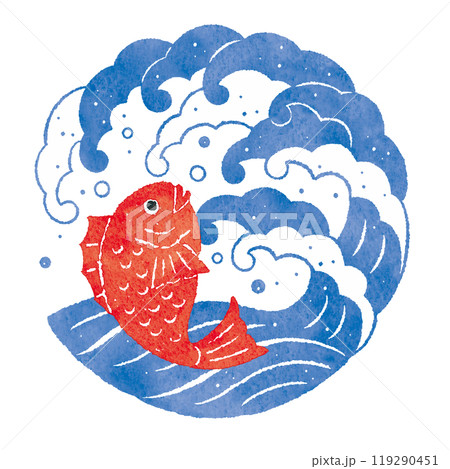 丸い荒波と鯛 大漁 イラスト