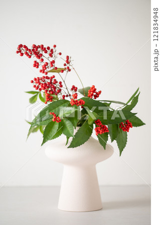 冬に咲く赤いセンリョウの実 (千両)冬、十二月