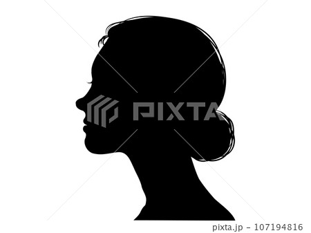 髪を束ねた女性の横顔シルエット 上半身横向きのイラスト