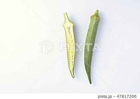 縦に半分に切ったオクラ