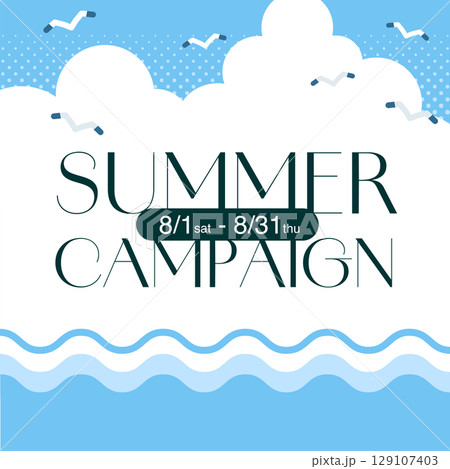 雲・カモメ・波をあしらったポップな夏のキャンペーンバナー