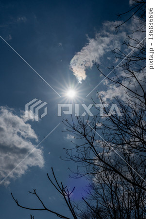 冬枯れの枝先と太陽