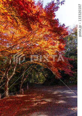 紅葉と快晴の空のコピースペース