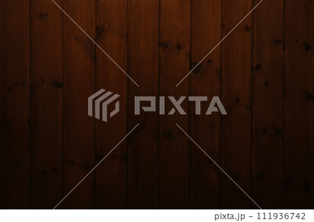 焦茶色の木目や節のあるニス塗の羽目板の縦張り板壁の背景画像