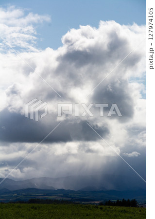 ゲリラ豪雨の空のイメージ 真夏の晴れた青空と雨雲の境界