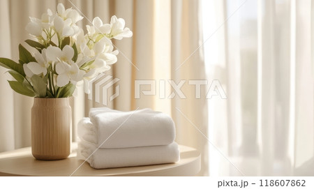 Luxurious Hotel Room with Elegant Floral Decor and Plush Amenities for Relaxing Hospitality