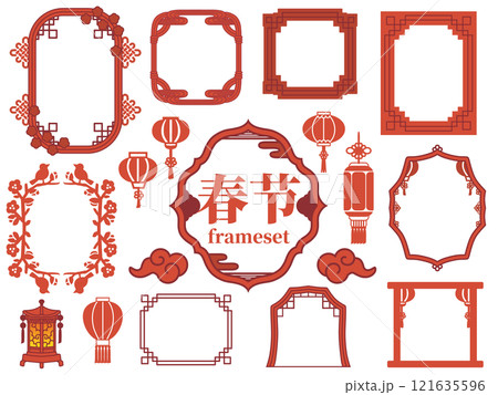 中国の春節フレームのベクターイラストセット