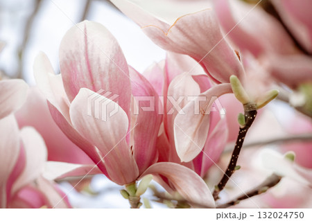 Magnolia Sulanjana flowers with petals in the spring season. beautiful pink magnolia flowers in spring, selective focusing.