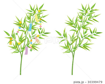 七夕 織姫と彦星 笹と短冊飾り白背景素材 折り紙工作