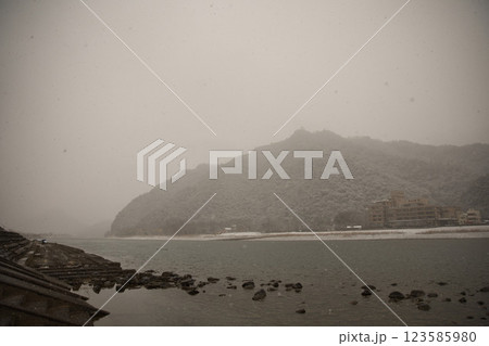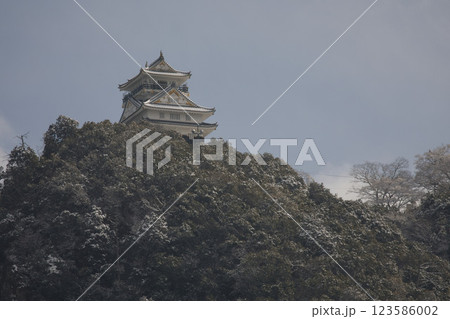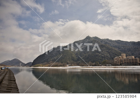 岐阜 雪景色の長良川と岐阜城天守閣と金華山10