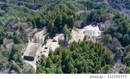 県指定史跡「伊勢田丸城」の石垣と曲輪の風景