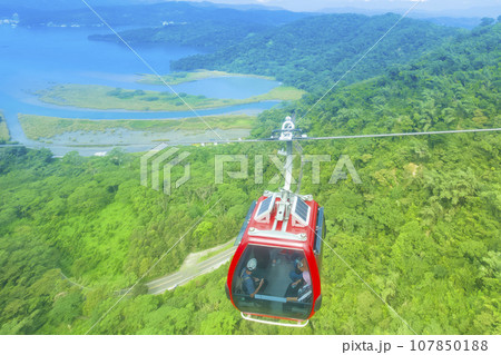 台湾・日月潭周囲の森林とロープウェイ