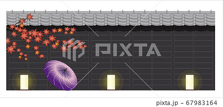 犬矢来がある和風板壁と置き行灯と紅葉の秋の風景