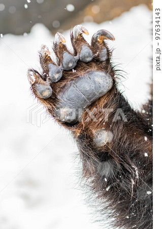 Upper part of the forelimb of predatory bear with long sharp claws.