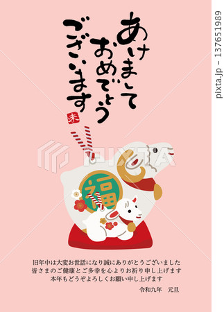 未年の年賀状デザイン 親子の羊の土鈴の和風年賀はがきテンプレート