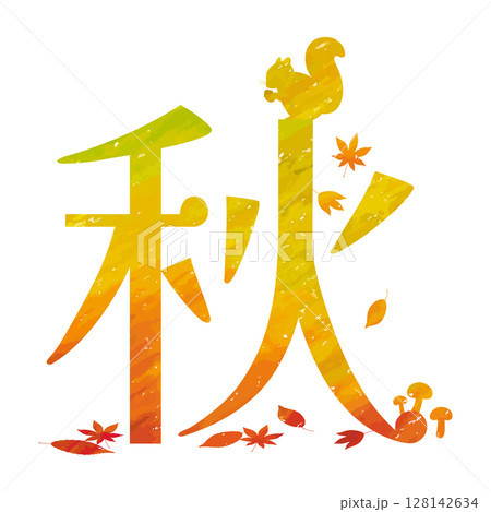 「秋」のロゴマーク オータムカラーの絵の具で塗られた秋の文字と素材のロゴタイプ