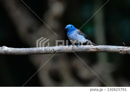 タイなど東南アジアの熱帯雨林で見られる青い美しい野鳥、クロエリヒタキ