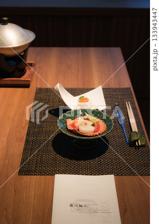 旅館の前菜料理|帆立と季節野菜の前菜・湯豆腐付き|和食・会席料理