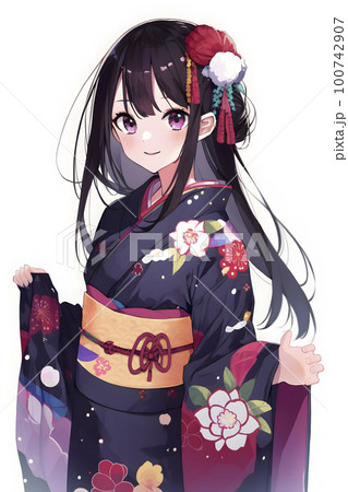 艶やかな着物がよく似合う女性 イラスト「AI生成画像」