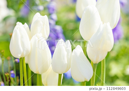 家の周りの草花 四季の色々 植物園の花壇に美しい早咲きのチュウリップの花が咲きました