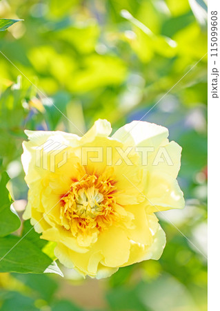 家の周りの草花 四季の色々 牡丹園の木々が淡い春の光りを浴びて美しい黄色の花を輝かせています
