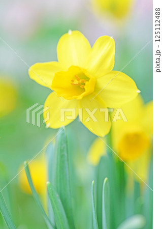 家の周りの草花 四季の色々 春の公園の花壇に黄色く美しい清楚なスイセン花が咲きました
