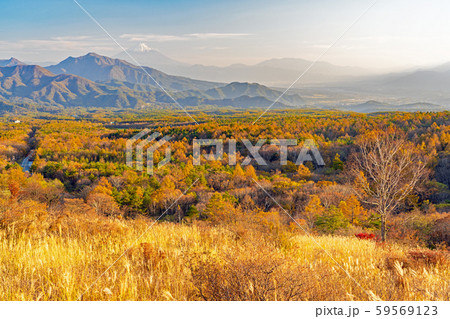 山梨県北杜市 紅葉に染まる美し森と八ヶ岳