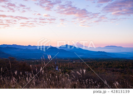 (山梨県)ツツジ咲く清里の美し森 富士山遠望 夕景