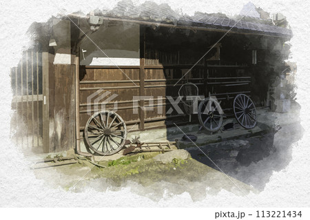 水彩画風 美保関 青石畳通り 美保関資料館 島根県松江市