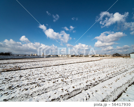 舟渡池公園 田んぼの雪景色