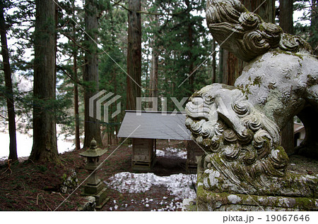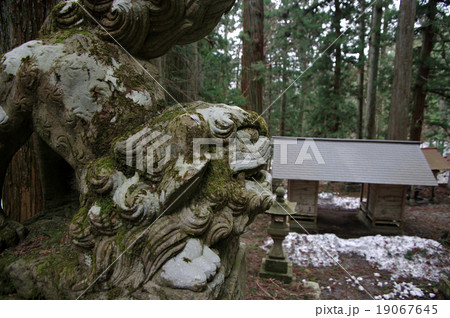 熊野神社狛犬 庄原市西城町熊野 残雪