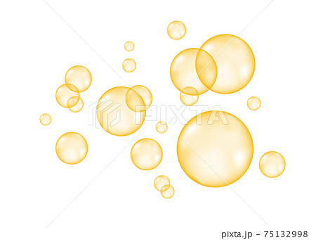 Fizzing air golden bubbles on white background.