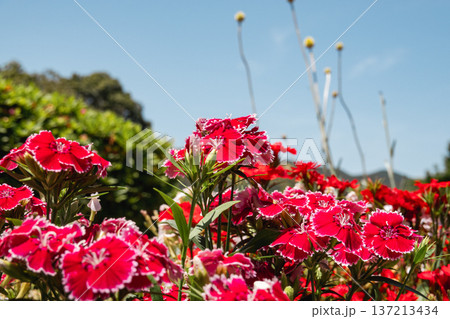 青空に映える鮮やかな赤色の美女撫子