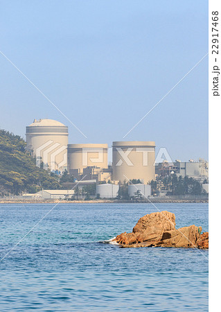 福井県美浜町の美浜原子力発電所と海の景色