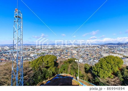 小牧市 小牧市歴史館(小牧城)の航空障害灯と小牧市街の眺望