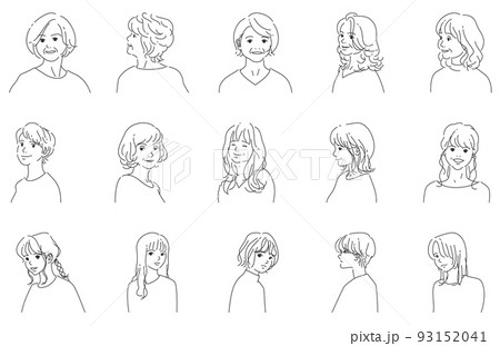 中年の女性5人セット|背景透過の線画