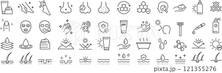 ベクターでモノクロのスキンケアに関する線画アイコンセット
