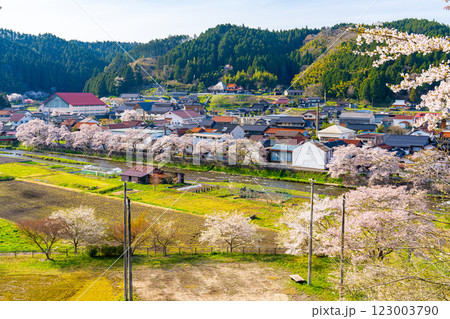 宿場町の春 満開の桜 岡山県真庭市 美甘宿場桜