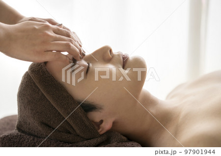 エステサロンで施術を受ける若い男性の横顔 フェイシャル イメージ