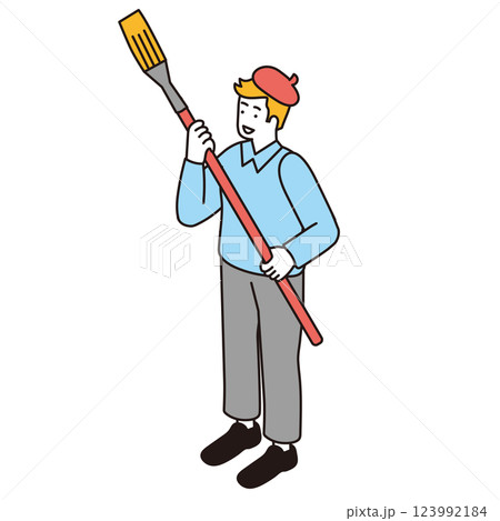 アイソメトリック構図の筆をもつ男性のイラスト