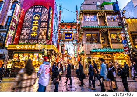 日本の横浜都市景観 3月・観光客らで賑わう横浜中華街。コロナ禍前と変わらない…=15日