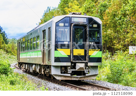 夕方の美馬牛駅に停車中のディーゼルカー 富良野線 北海道