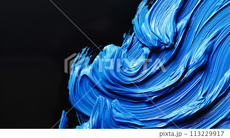 黒背景に青色のオイルペイントのブラシストローク背景